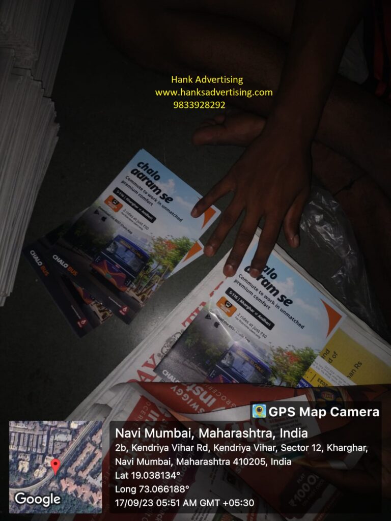 Pamphlet distribution via newspaper insertion involves placing marketing flyers (pamphlets) inside the daily newspapers that are delivered to households and offices.